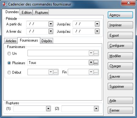 Pour cela, il faut déterminer les critères de sélection à l'aide d'une période, d'une sélection sur les articles, d'une sélection sur les fournisseurs, d'une sélection sur les dépôts.