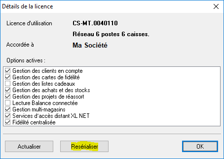 Vous accédez au masque « Détails de la licence », puis il faut cliquer sur le bouton « Resérialiser », ensuite sur le bouton « OK ».