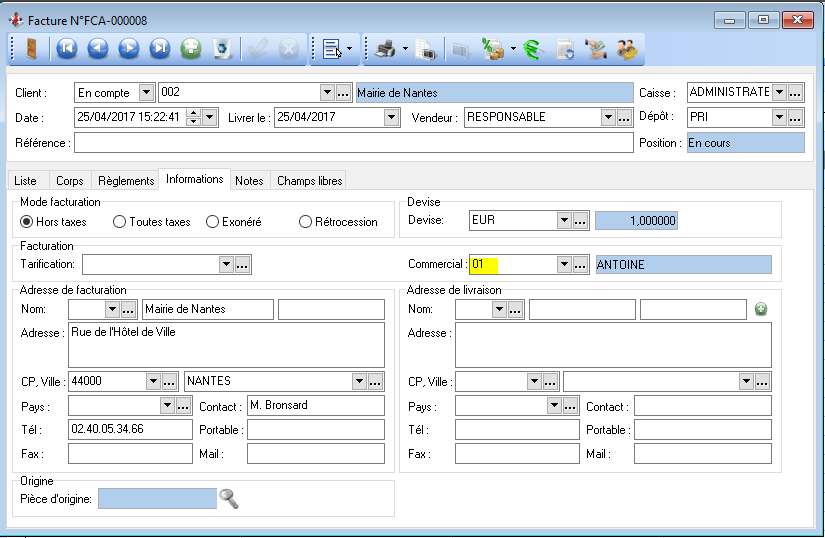 Les commerciaux peuvent être affectés à un client depuis leur fiche.