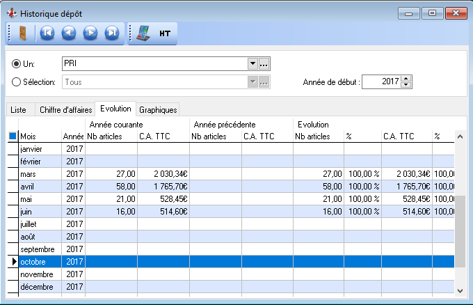 L’onglet « Evolution » permet de comparer les chiffres par rapport à l’année précédente.