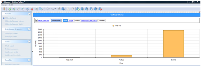 Si l'on clique sur l'une des "Barres", le graphique affiche le détail par Caisse.