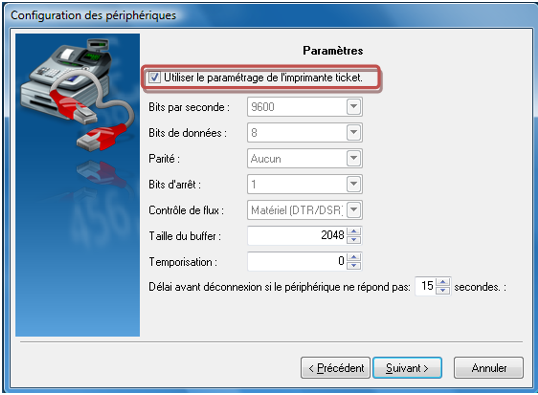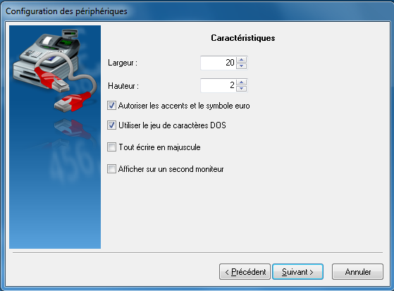 Une liste de périphériques est livrée en standard. Ces périphériques correspondent aux matériels raccordés aux caisses (afficheurs, imprimantes tickets, imprimantes chèques, terminaux de paiements, tiroirs caisses, balances).
