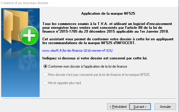 Il faut ensuite application la marque NF525 sur votre nouveau dossier.