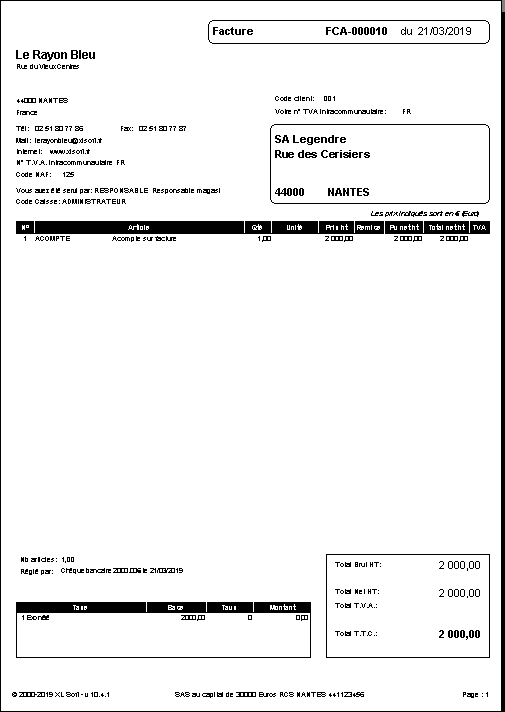 Cet article décrit la manière d'éditer et de reprendre des factures d'acomptes dans XL Pos.