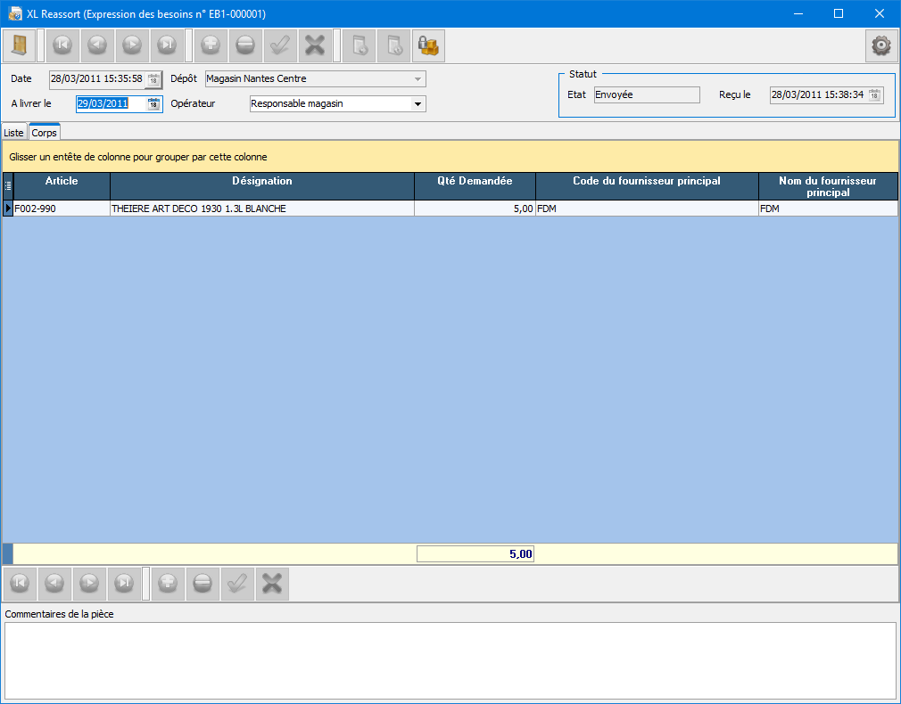 Les expressions de besoins sont les demandes de réapprovisionnemens transmises par les magasins, elles sont consultables à partir de l’icône suivante