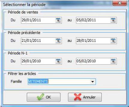 L’utilisateur sélectionne la période de ventes (A noter, la période précédente et la période N-1 se