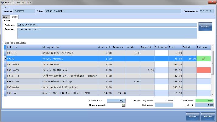 Le retrait listier est une opération effectuée à partir de la caisse ou de l’Administrateur qui permet au listier d’emporter des articles avant la clôture de la liste.