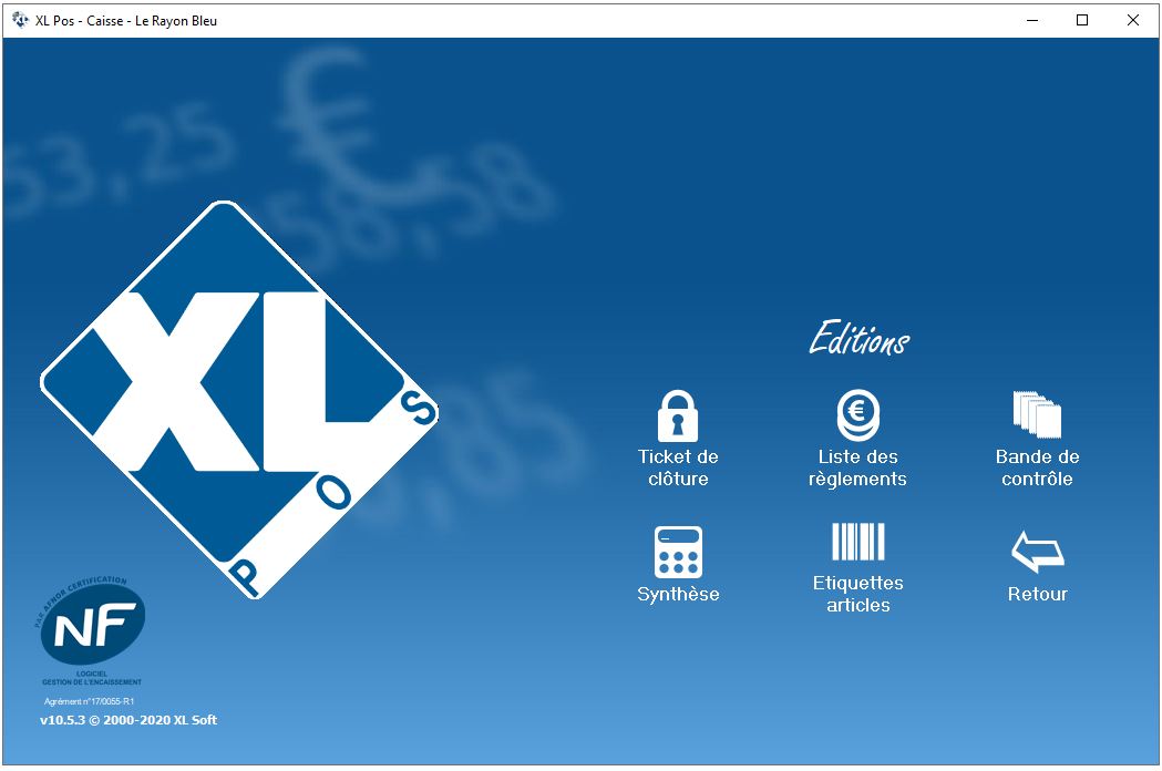 Le bouton "Ticket de clôture" permet de rééditer la dernière clôture de caisse.