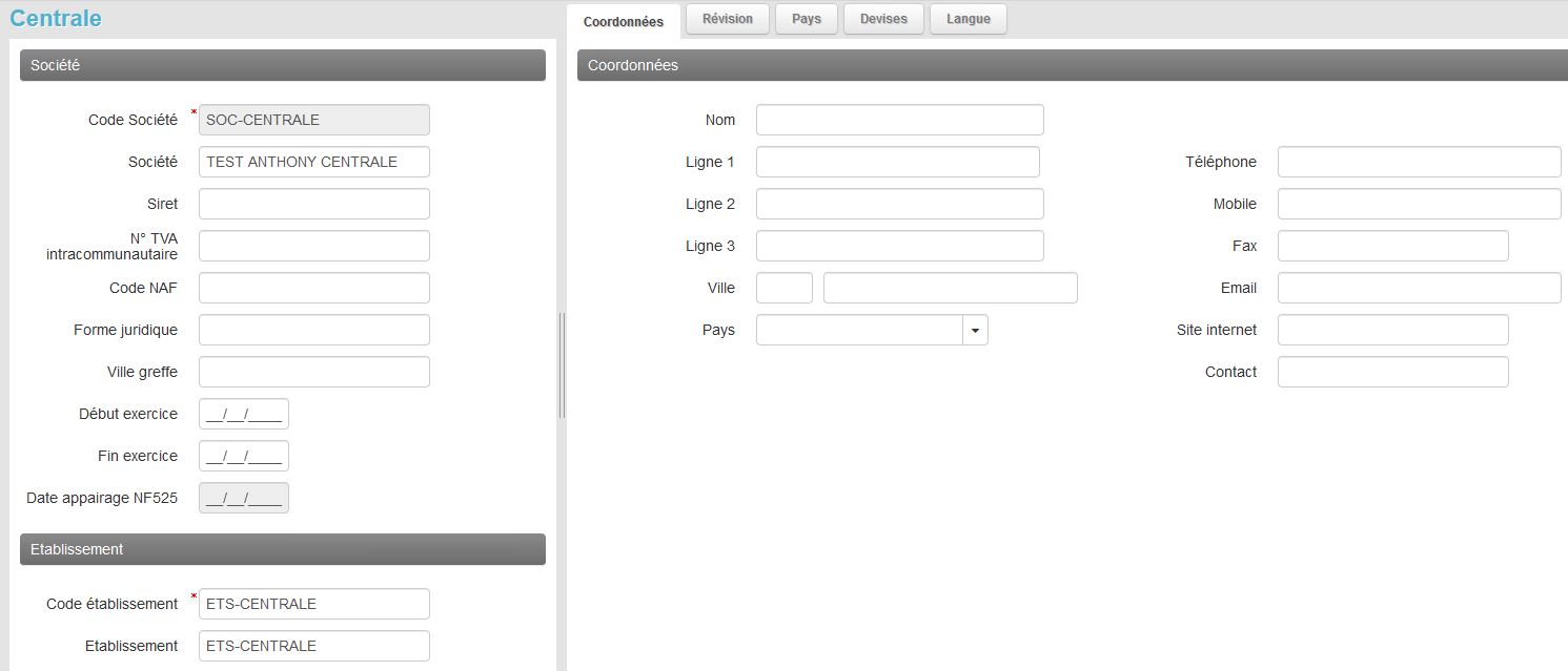 Cette rubrique permet d'afficher les coordonnées du siège.